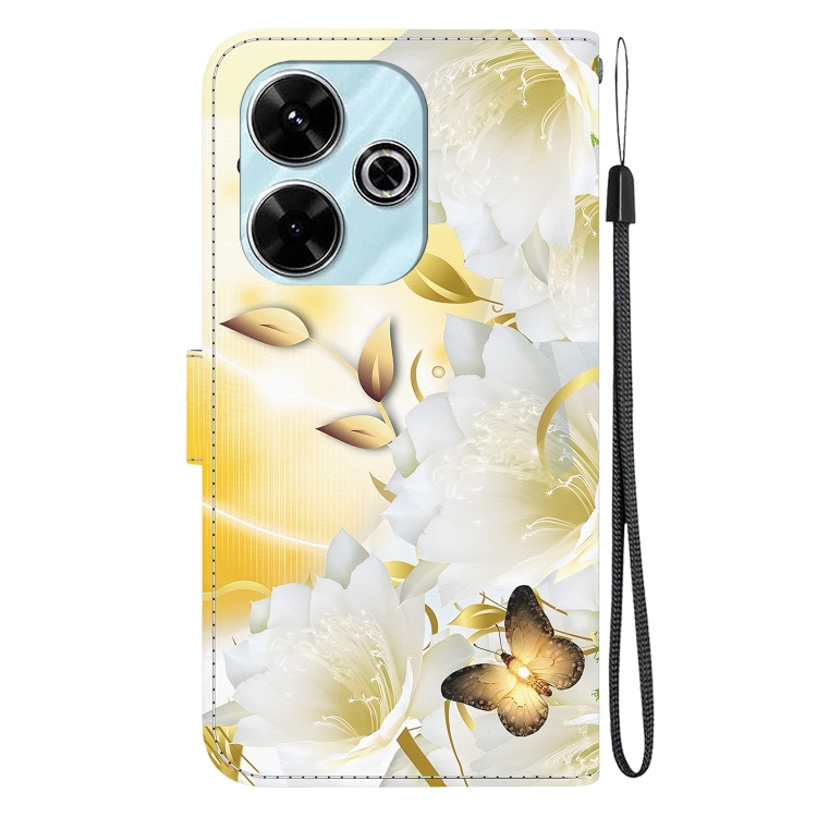 Funda de Cuero con Dibujo de Colores y Textura de Cristal para Xiaomi Redmi 13 4G (Mariposa Dorada Epiphyllum)