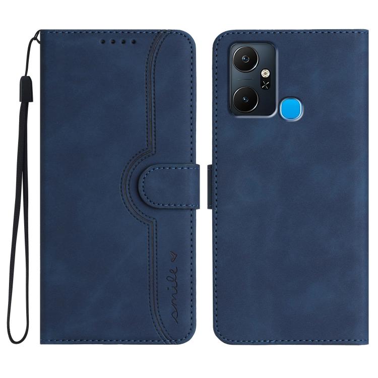 Funda de Cuero con Diseño de Corazón para Infinix Smart 6 Plus (Azul Real)
