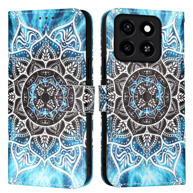 Funda de Cuero para ZTE Blade A35/A55 con Diseño Mandala Submarina (Color Liso)
