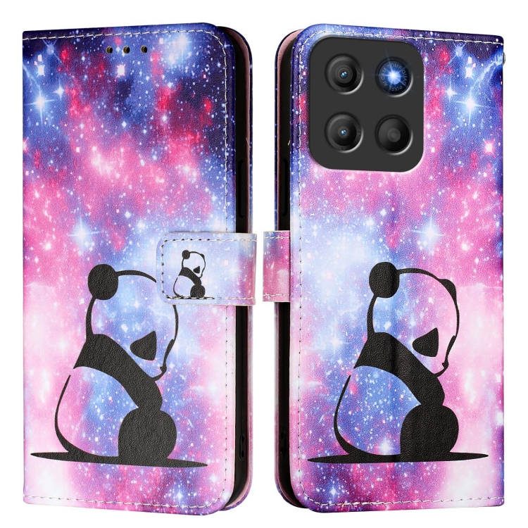 Funda de Cuero Motorola Moto G15 con Diseño de Dibujos y Colores Lisos (Panda Bebé)