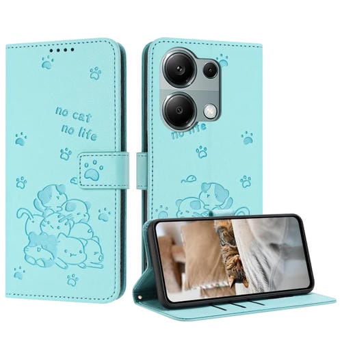 Funda de Cuero con Estampado de Gatito y Cordón para Redmi Note 13 Pro 4G (Verde Menta)