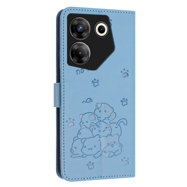 Funda de Cuero para Tecno Camon 20 Pro 5G con Diseño de Gatito en Relieve y Cordón (Azul)