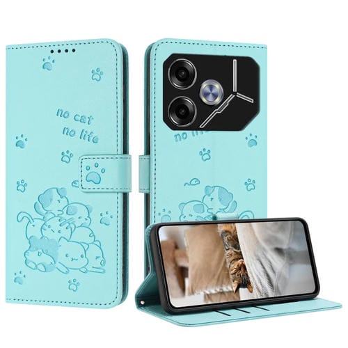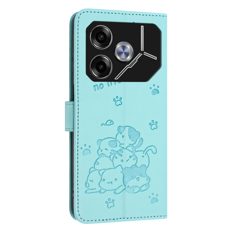 Funda de Cuero para Tecno Pova 6 Pro y Pova 6 5G con Diseño de Gatito y Cordón (Verde Menta)