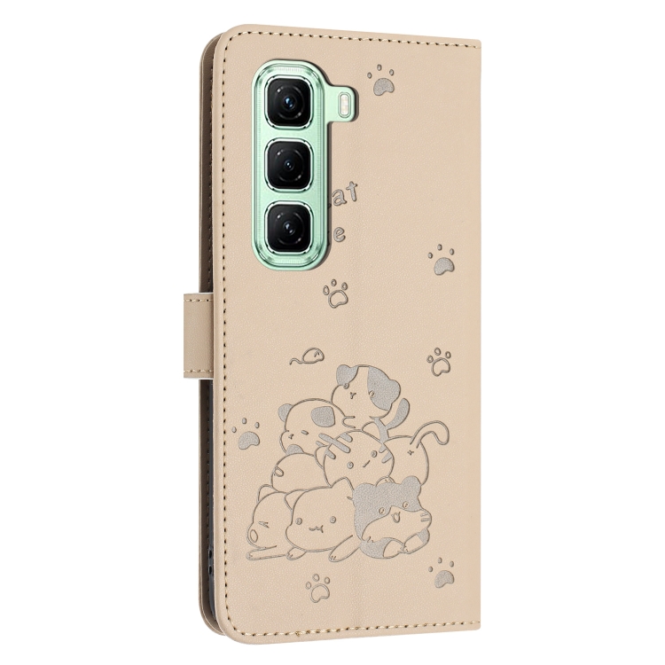 Funda de Cuero Infinix Hot 50 4G con Diseño de Gatito En Relieve y Cordón (Beige)