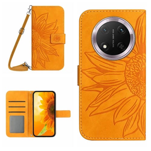 Funda de Cuero Honor X9C con Diseño de Girasoles y Cordón (Amarillo)