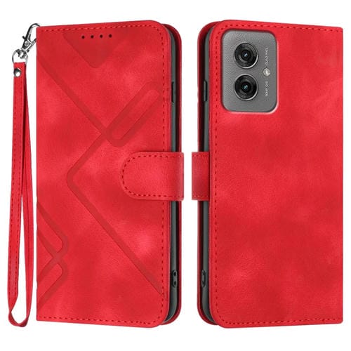 Funda de Cuero Motorola Moto G55 Diseño de Líneas Tacto Suave (Rojo)