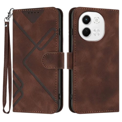 Funda de Cuero para Tecno Pova 6 Neo 5G y Spark 30 5G con Diseño de Líneas y Tacto Suave (Café)