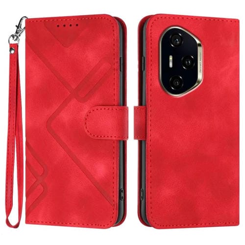 Funda de Cuero para Honor 300 Pro y Honor 300 Ultra con Diseño de Líneas y Tacto Suave (Rojo)