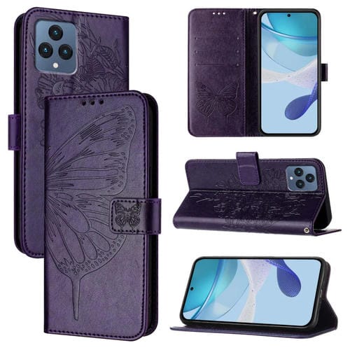 Funda de Cuero para T-Mobile Revvl 6/6X con Diseño de Mariposa en Relieve (Morado Oscuro)