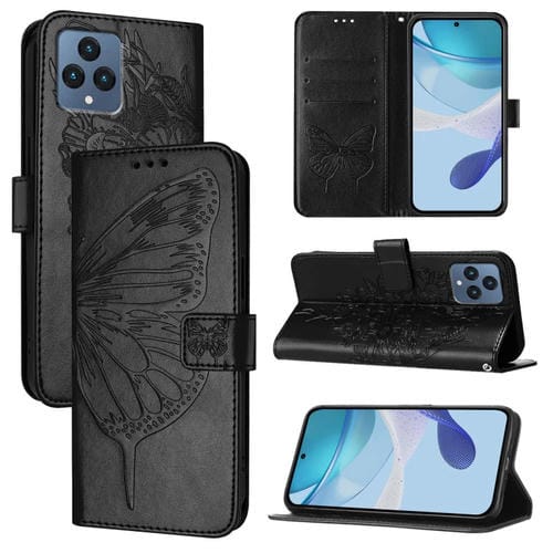 Funda de Cuero para T-Mobile Revvl 6/6X con Diseño de Mariposa En Relieve (Negra)