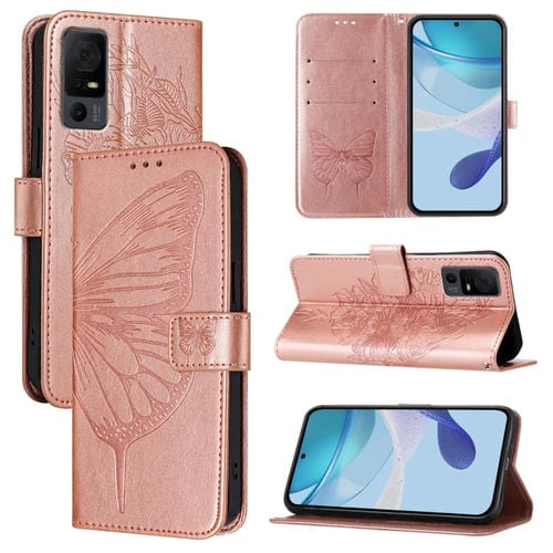 Funda de Cuero para TCL 40 XL/40 T T608Dl con Diseño de Mariposa en Relieve (Oro Rosa)