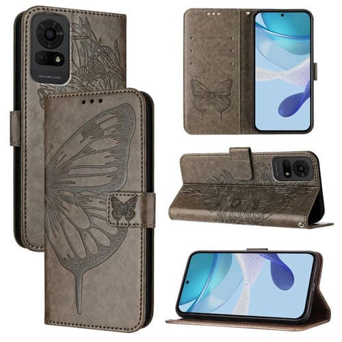 Funda de Cuero para TCL 50 Le 5G con Diseño de Mariposa en Relieve (Gris)