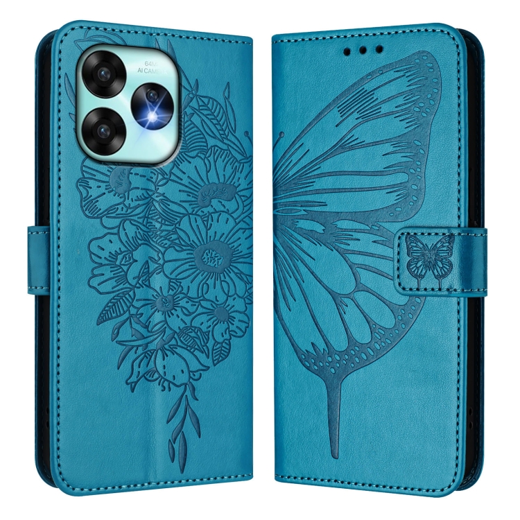 Funda de Cuero para Teléfono Umidigi A15/A15C/A15T con Diseño de Mariposa En Relieve (Azul)
