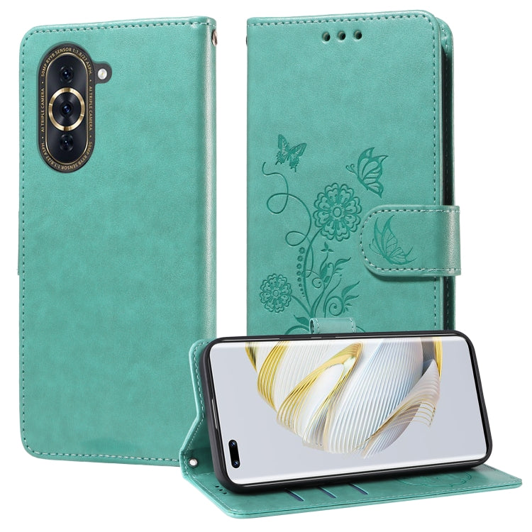 Funda de Cuero Huawei Nova 10 Pro con Diseño de Mariposas y Flores en Relieve (Verde)