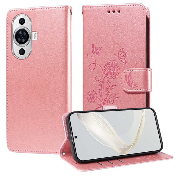 Funda de Cuero Huawei Nova 11 Pro Nova 11 Ultra Diseño Mariposas y Flores En Relieve (Oro Rosa)