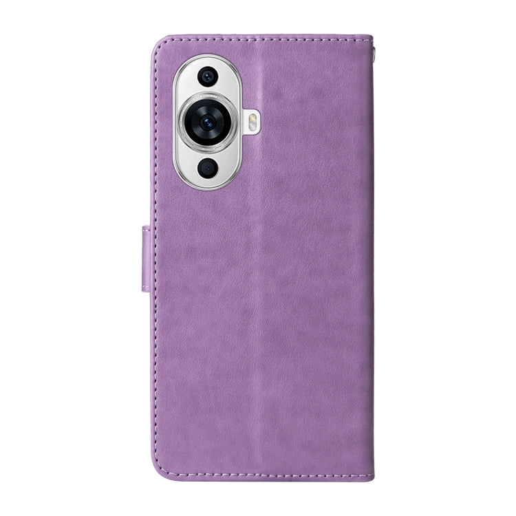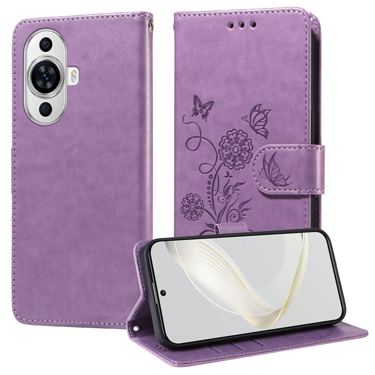 Funda de Cuero Huawei Nova 12S 4G con Diseño de Mariposas y Flores en Relieve (Morado)