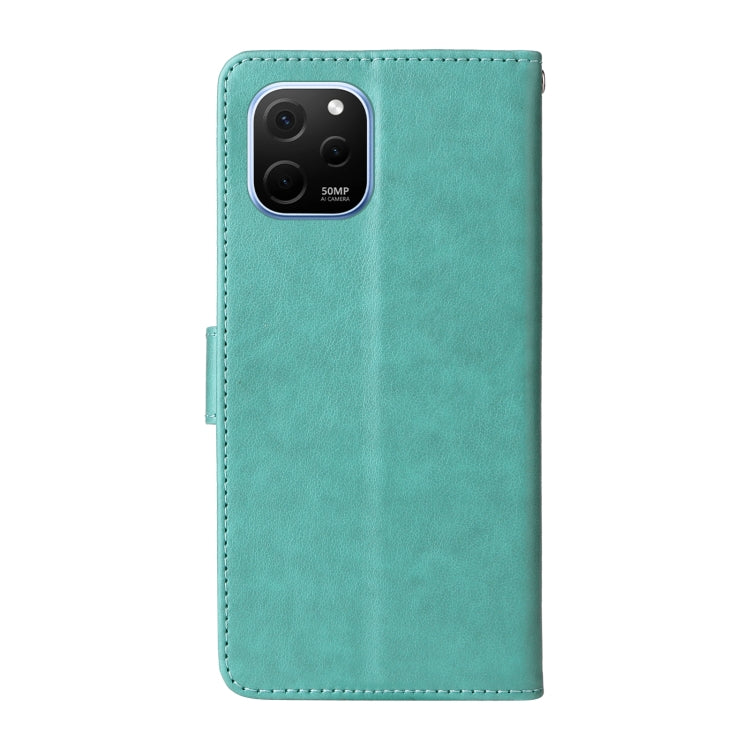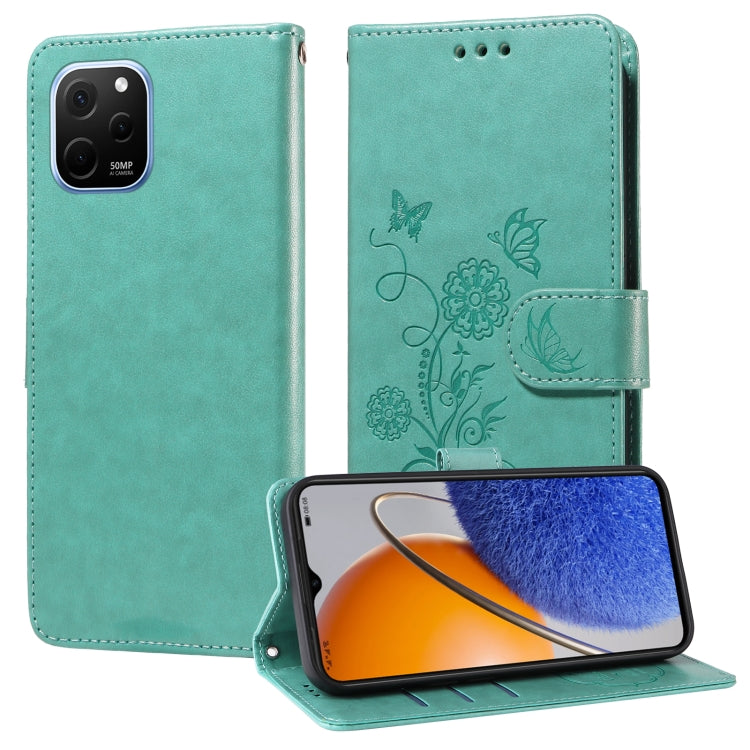 Funda de Cuero para Huawei Nova Y61 Enjoy 50Z con Diseño de Mariposas y Flores en Relieve (Verde)
