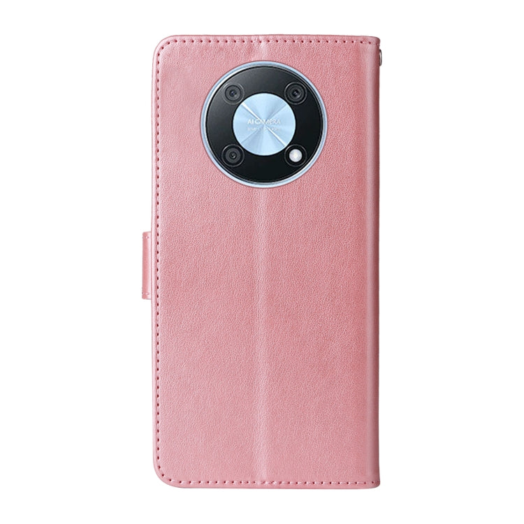 Funda de Cuero Huawei Nova Y90 con Diseño de Mariposas y Flores en Relieve (Oro Rosa)