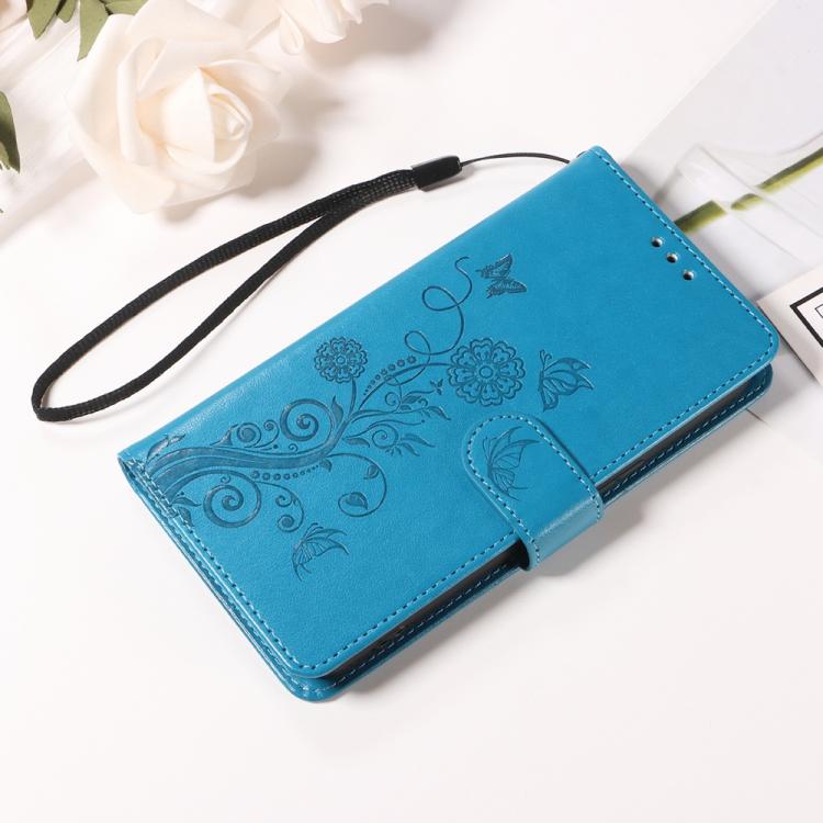Funda de Cuero Motorola Moto G35 Diseño Mariposas Flores en Relieve (Azul)