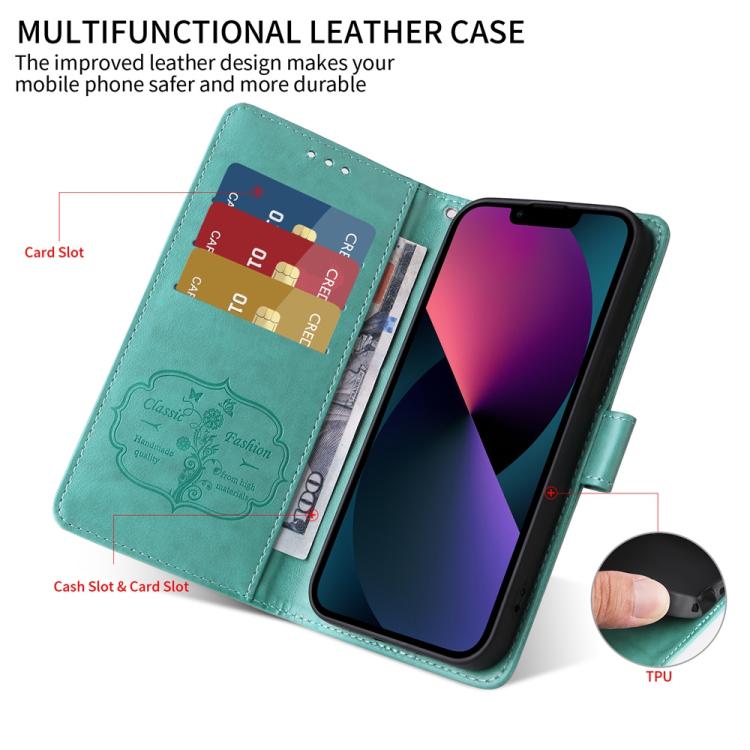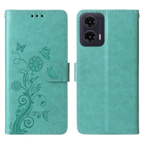 Funda de Cuero Motorola Moto G35 con Diseño de Mariposas y Flores en Relieve (Verde)
