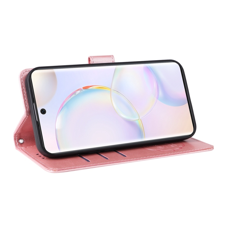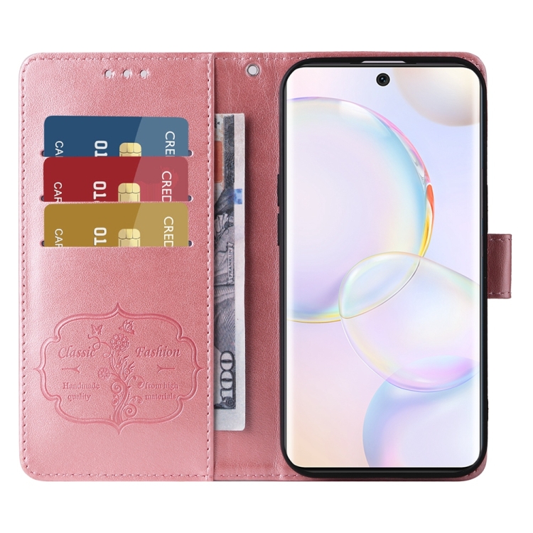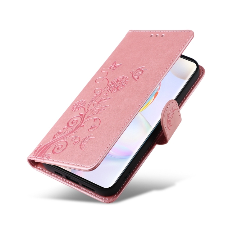Funda de Cuero con Diseño de Mariposas y Flores En Relieve para Oppo A1/A98/F23 5G (Oro Rosa)