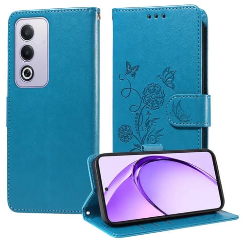 Funda de Cuero con Diseño de Mariposas y Flores En Relieve para Oppo A3 Pro 5G Global/India (Azul)