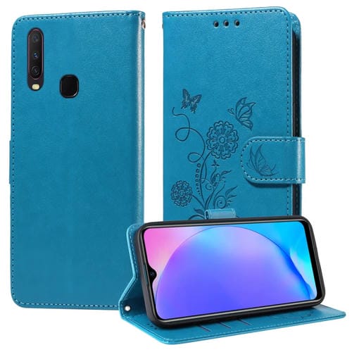 Funda de Cuero con Diseño de Mariposas y Flores En Relieve para Vivo Y17/Y15 (Azul)