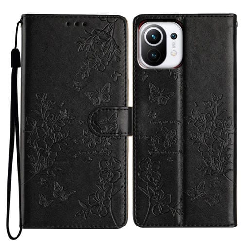 Funda de Cuero con Diseño de Mariposas y Flores para Xiaomi Mi 11 Lite (Negra)