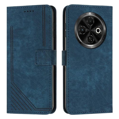 Funda de Cuero para Tecno Spark 30C con Diseño de Rayas y Tacto Agradable (Azul)