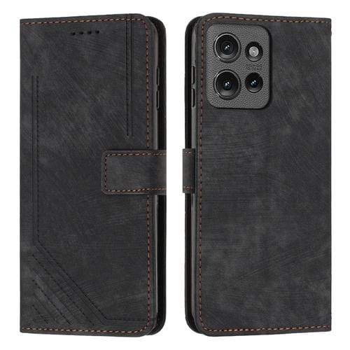 Funda de Cuero para Motorola Edge 50 con Diseño de Rayas y Cordón (Negro)