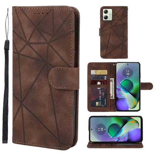 Funda de Cuero para Motorola Moto G54 con Diseño Geométrico y Líneas (Marrón)