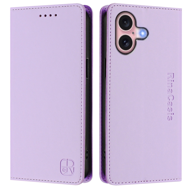 Funda de Cuero con Doble Pliegue y Succión Magnética para iPhone 16 Rc01 (Morado Claro)