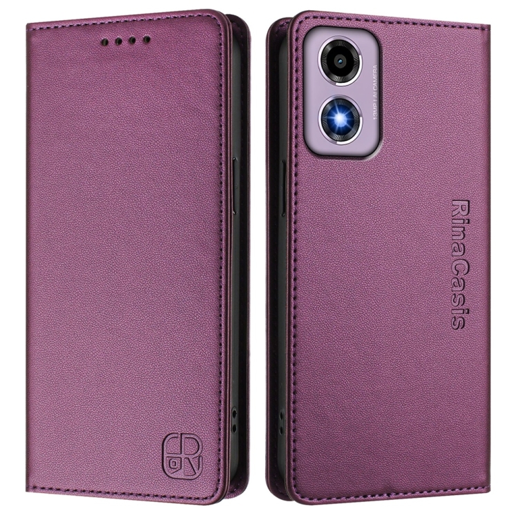Funda de Cuero Motorola Moto E14/G24/G04/G04S Rc01 con Doble Pliegue y Succión Magnética (Violeta)