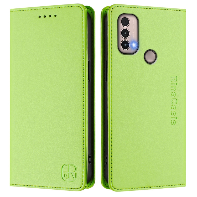 Funda de Cuero Motorola Moto E40/E30/E20 Rc01 con Doble Pliegue y Succión Magnética (Verde Hierba)