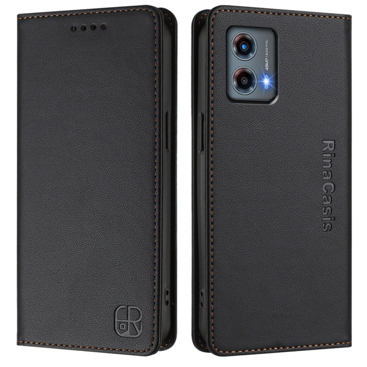 Funda de Cuero Motorola Moto G 5G 2023 Rc01 con Doble Pliegue y Succión Magnética (Negro)