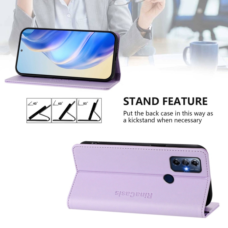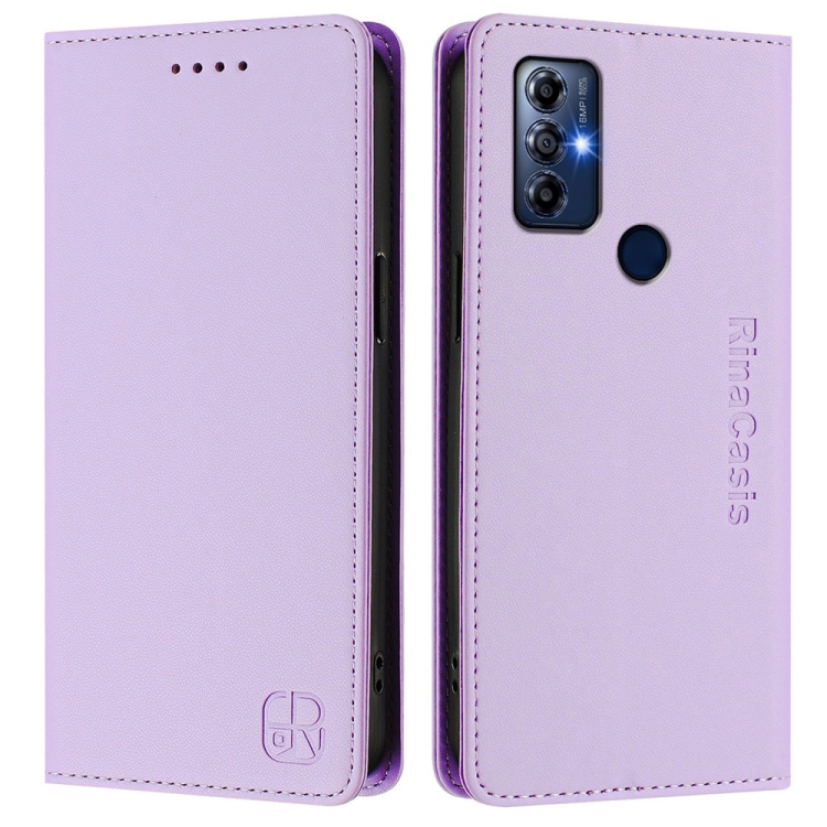 Funda de Cuero con Doble Pliegue y Succión Magnética para Motorola Moto G Play 2022 Rc01 (Morado Claro)
