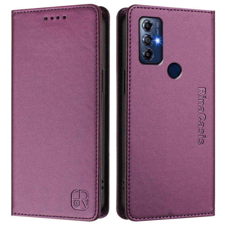 Funda de Cuero Motorola Moto G Play 2022 Rc01 con Doble Pliegue y Succión Magnética (Violeta)