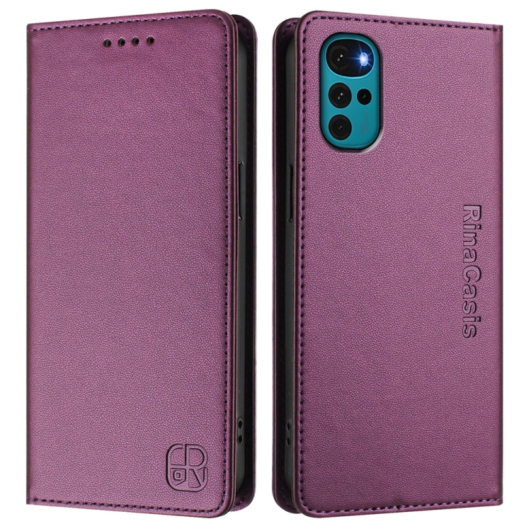 Funda de Cuero con Doble Pliegue y Succión Magnética para Motorola Moto G22/E32/E32S Rc01 (Violeta)