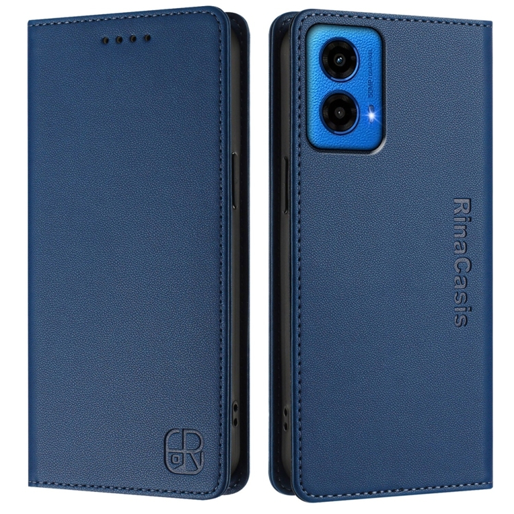 Funda de Cuero con Doble Pliegue y Succión Magnética para Motorola Moto G45 5G/G34 5G Rc01 (Azul Oscuro)