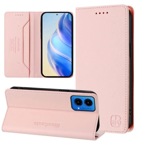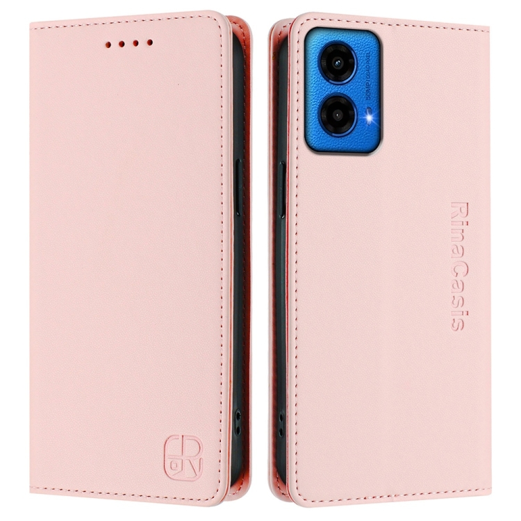 Funda de Cuero Motorola Moto G45 5G/G34 5G Rc01 con Doble Pliegue y Succión Magnética (Rosa)