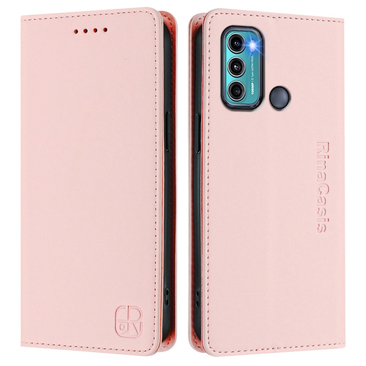 Funda de Cuero con Doble Pliegue y Succión Magnética para Motorola Moto G60/G40 Fusion Rc01 (Rosa)