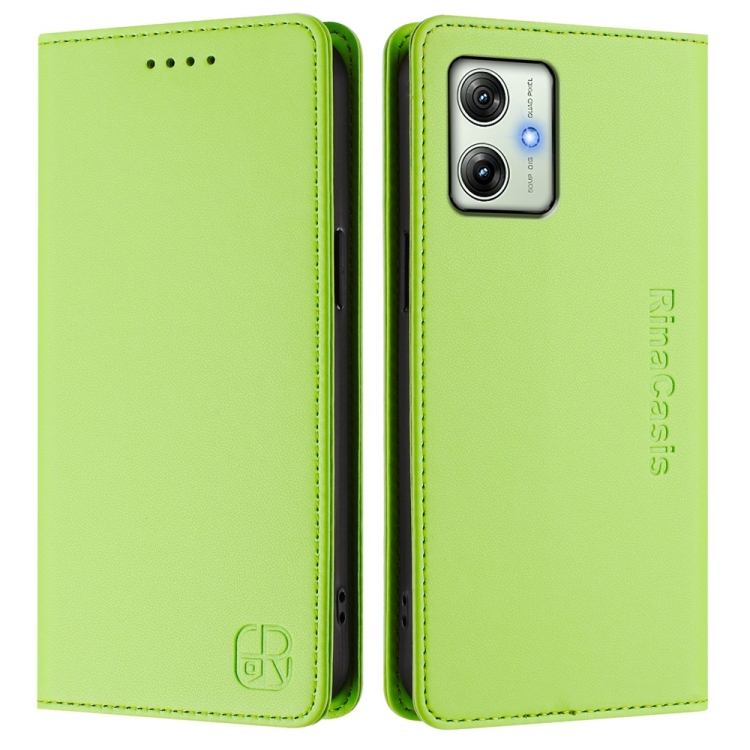 Funda de Cuero Motorola Moto G64 5G G54 G54 Power Rc01 con Doble Pliegue y Succión Magnética (Verde Hierba)