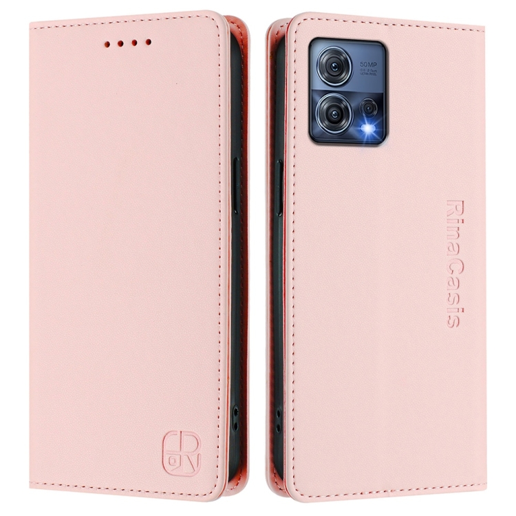 Funda de Cuero con Doble Pliegue y Succión Magnética para Motorola Moto S30 Pro/Edge 30 Fusion Rc01 (Rosa)