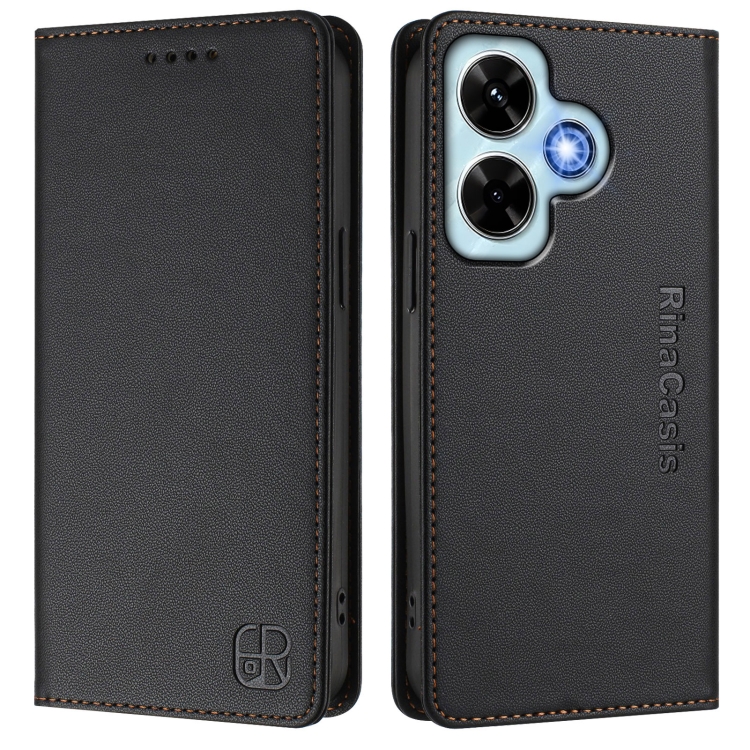 Funda de Cuero con Doble Pliegue y Succión Magnética para Redmi Note 13 4G Global Rc01 (Negra)