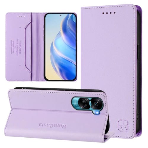 Funda de Cuero con Doble Pliegue y Succión Magnética Rfid para Honor 90 Lite / Honor X50I Rc01 (Morado Claro)