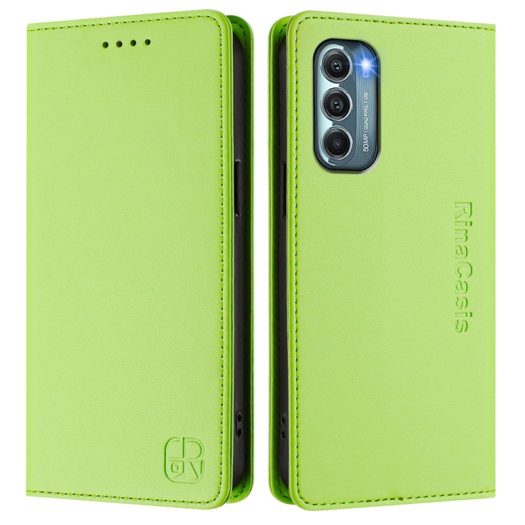 Funda de Cuero Motorola Moto G Stylus 5G 2022 Rc01 con Doble Pliegue y Succión Magnética (Verde Hierba)