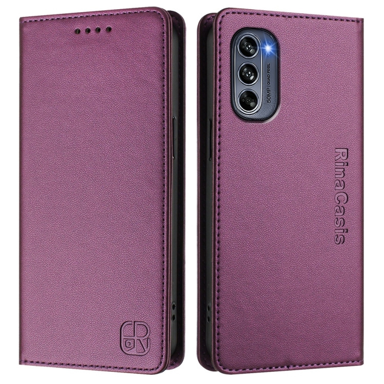 Funda de Cuero Motorola Moto G62 5G Doble Pliegue y Succión Magnética (Violeta)