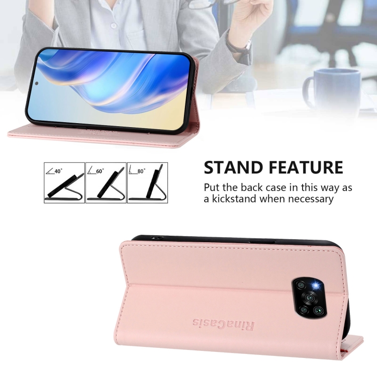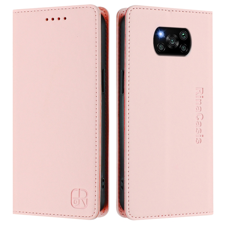 Funda de Cuero con Doble Pliegue y Succión Magnética para Teléfono Xiaomi Poco X3 / X3 Nfc / X3 Pro Rc01 (Rosa)