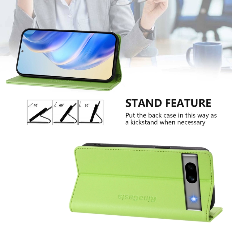 Funda de Cuero con Doble Pliegue y Succión Magnética Rfid para Google Pixel 7A Rc01 (Verde Hierba)