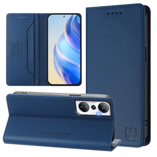 Funda de Cuero Doble Pliegue Succión Magnética RFID para Infinix Hot 20 4G Rc01 (Azul Oscuro)